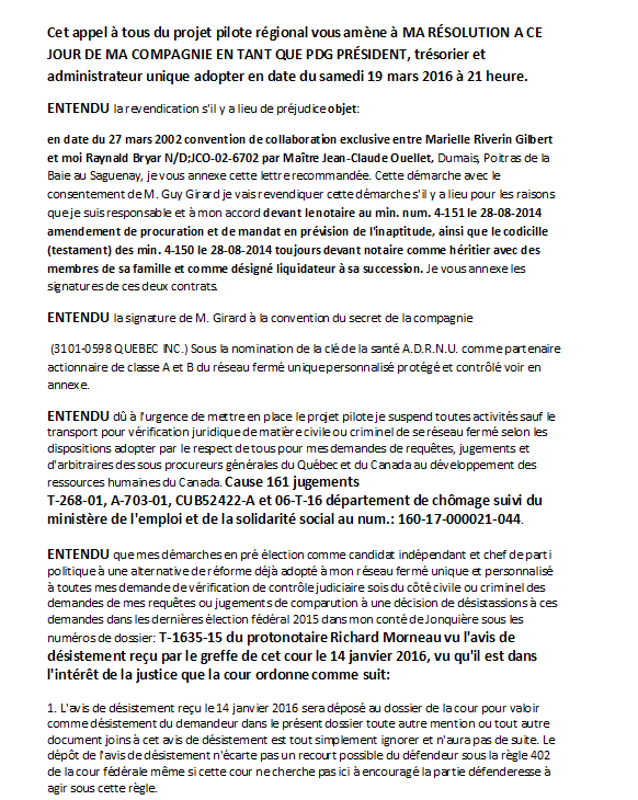projet pilote régional au Saguenay Lac-St-Jean au Québec Canada